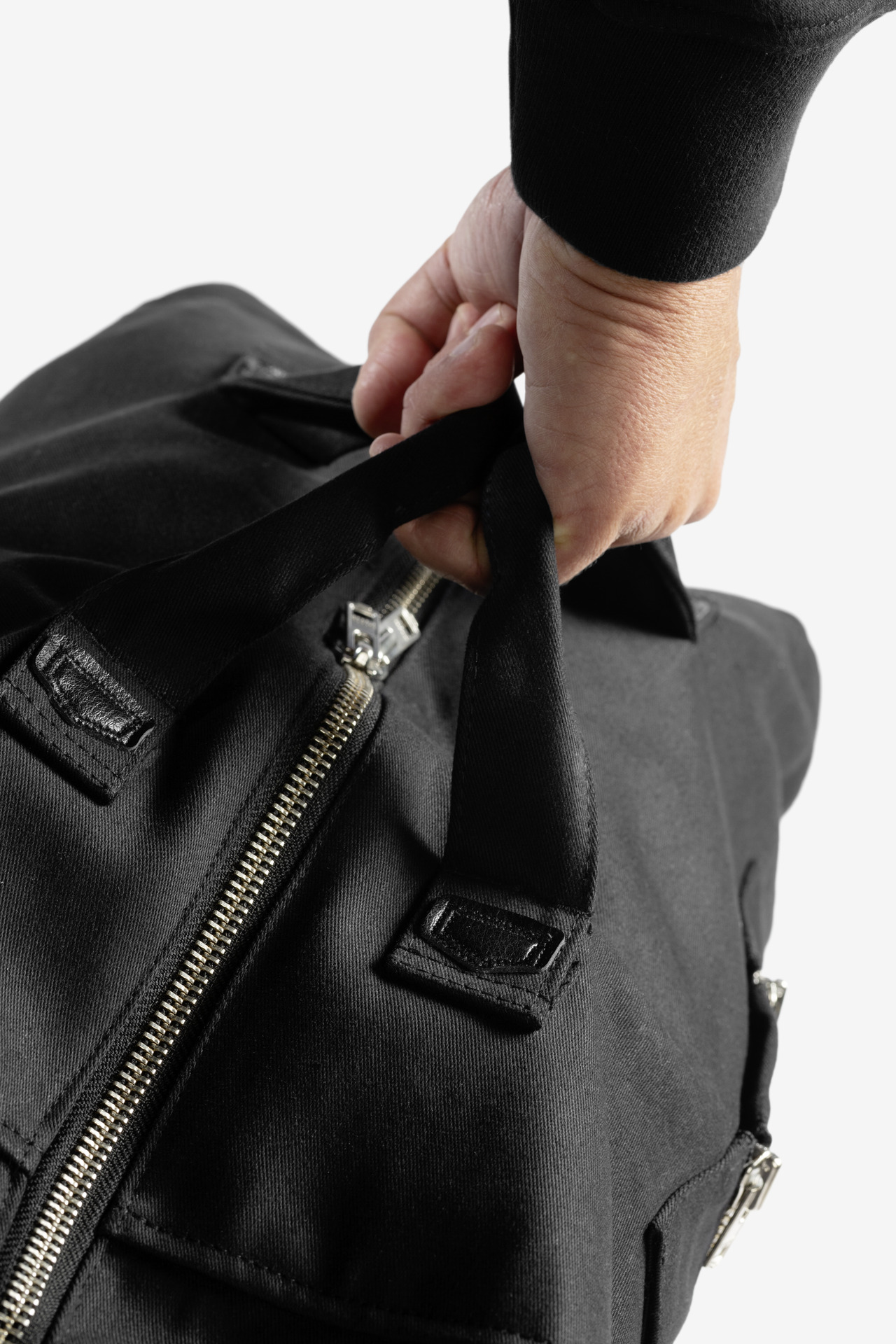 Tragegriffe aus laengs zusammengenaehtem Baumwoll-RipsbandAbnehmbare Ripsband-Gurte Tasche auf Vorderseite zwischen GurtenInnentascheNylon-Spiralreissverschluss mit silberfarbenem Metallschieber an oberer Taschenoeffnung und InnentascheReissverschlussoeffnung innen ermoeglicht einfache DekorationEinfache Absteppung an der TragegriffbefestigungRipsband-Gurt mit verstaerkendem Kreuzstich
