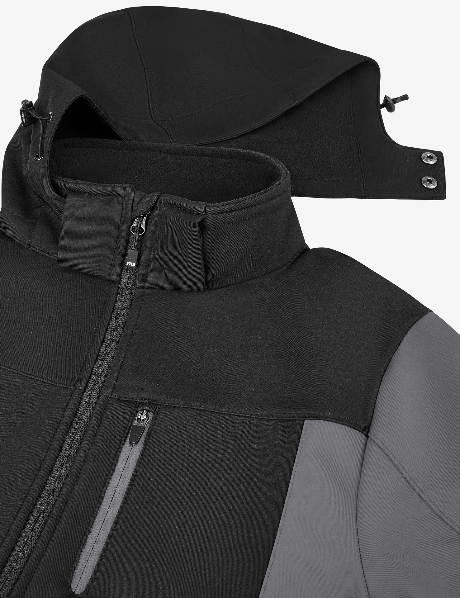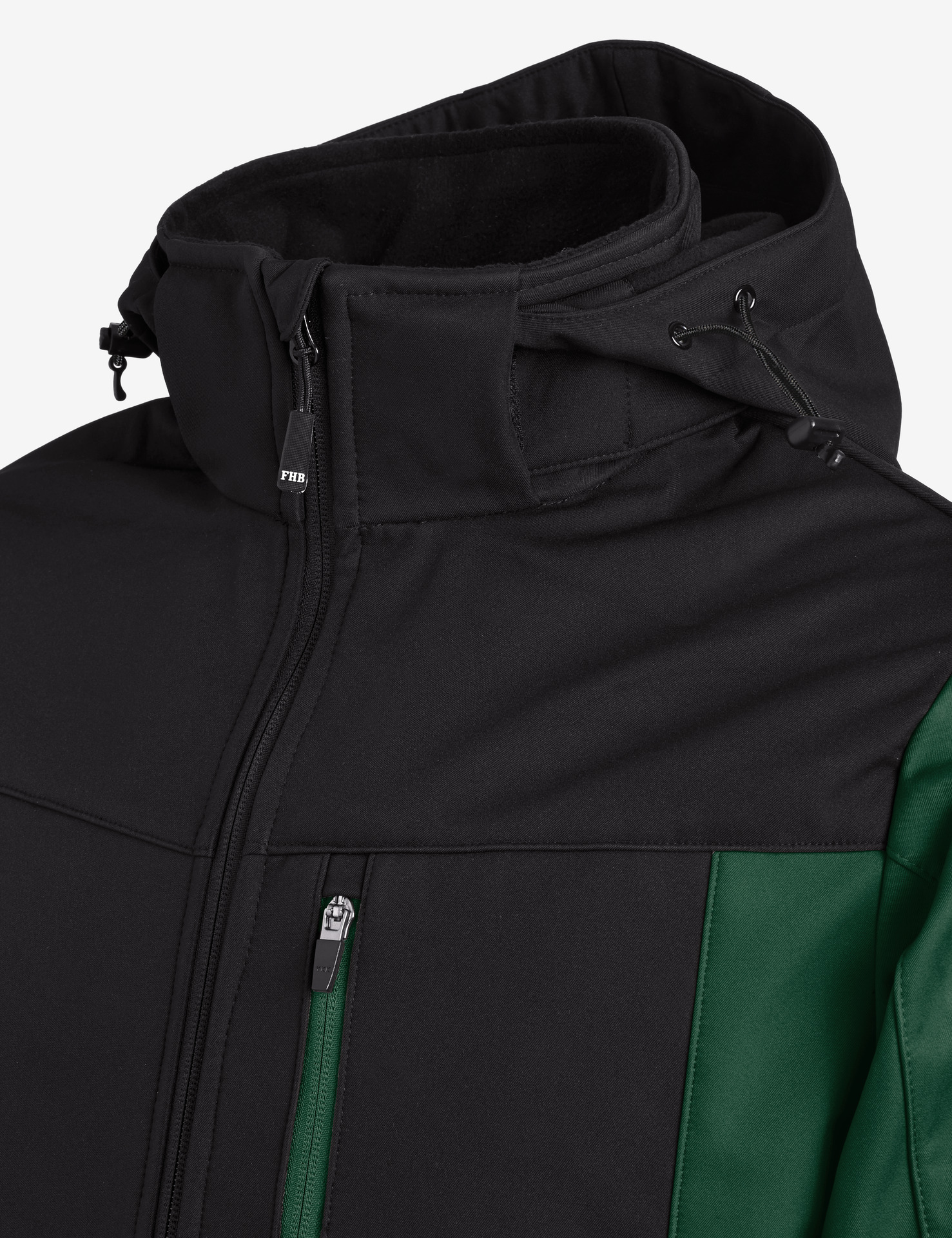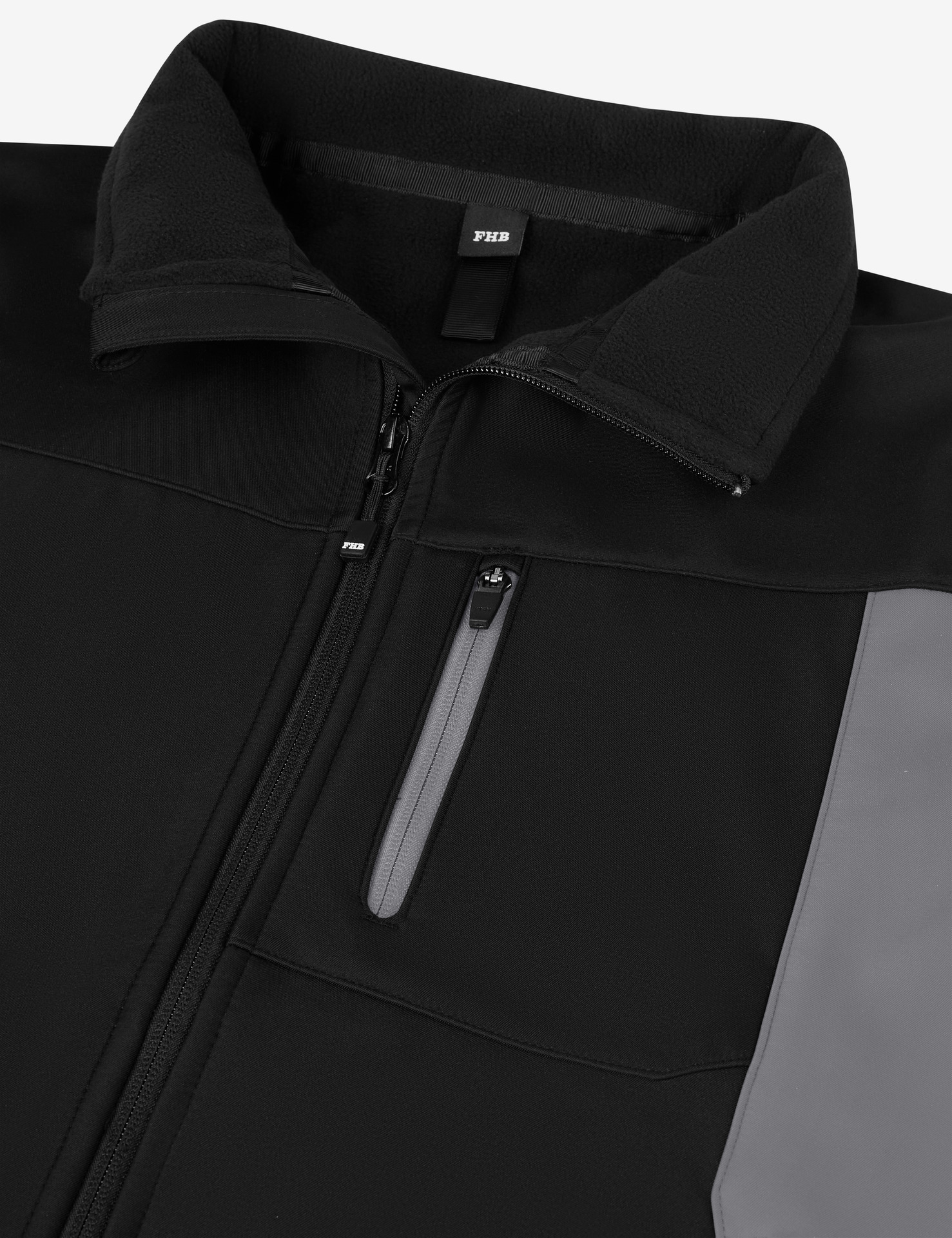 Set-In-AermelElastische, recycelte Einfassung an Buendchen und SaumInnere Rueckenhals-Einfassung aus recyceltem Material und NackenbandKunststoff-Vislon-Reissverschluss mit Metallzug und KordelendeVollstaendig verbundene innere Polarfleece-Schicht und Anti-Pilling-FinishVordere seitliche Kontrast-Softshell-Paspeltaschen mit verdecktem ReissverschlussKontrast-Softshell-Stoff an Tasche, Rueckenpasse und aeusserem KragenbandInnenliegender unsichtbarer Reissverschluss auf der linken Brustseite fuer einfache Veredelung