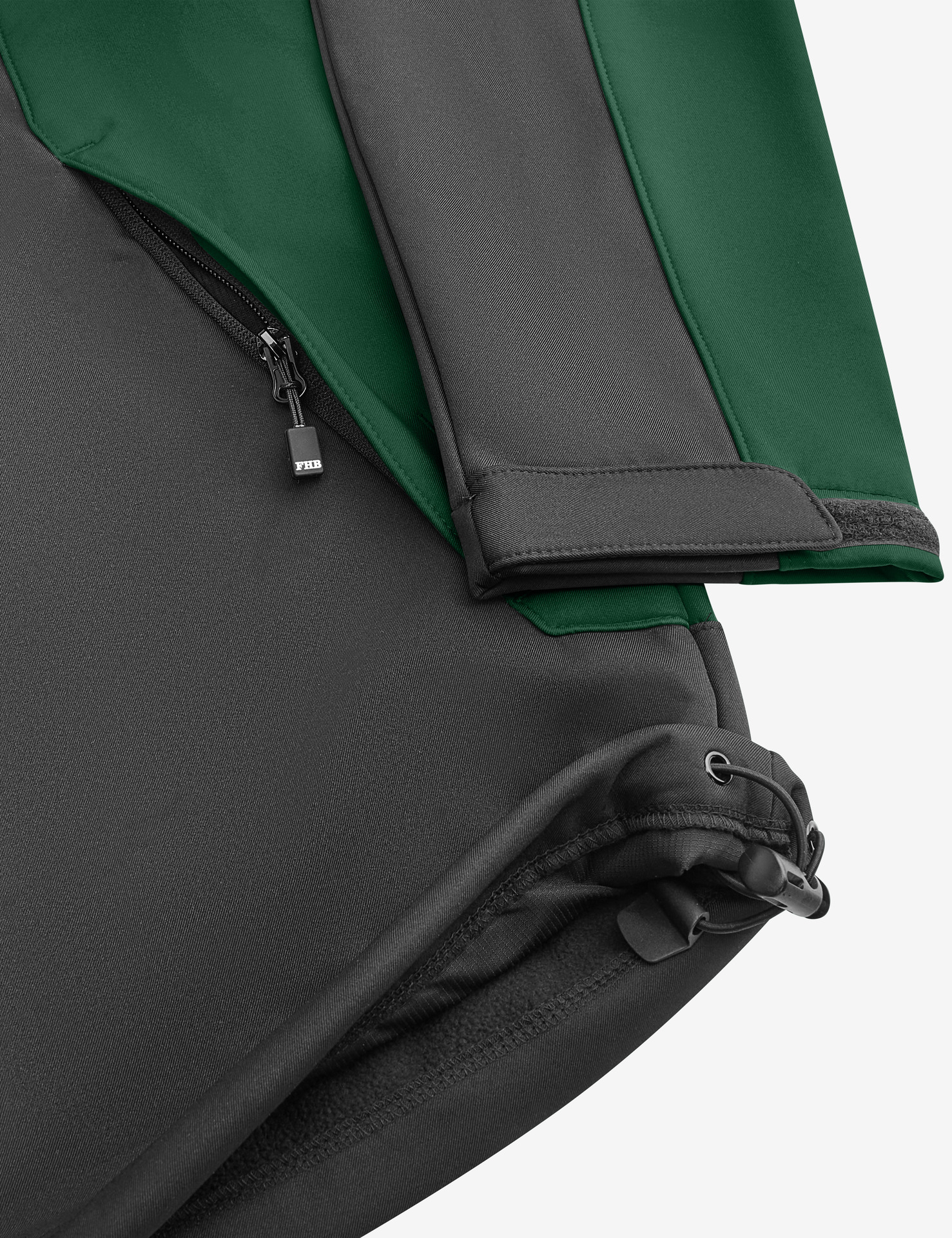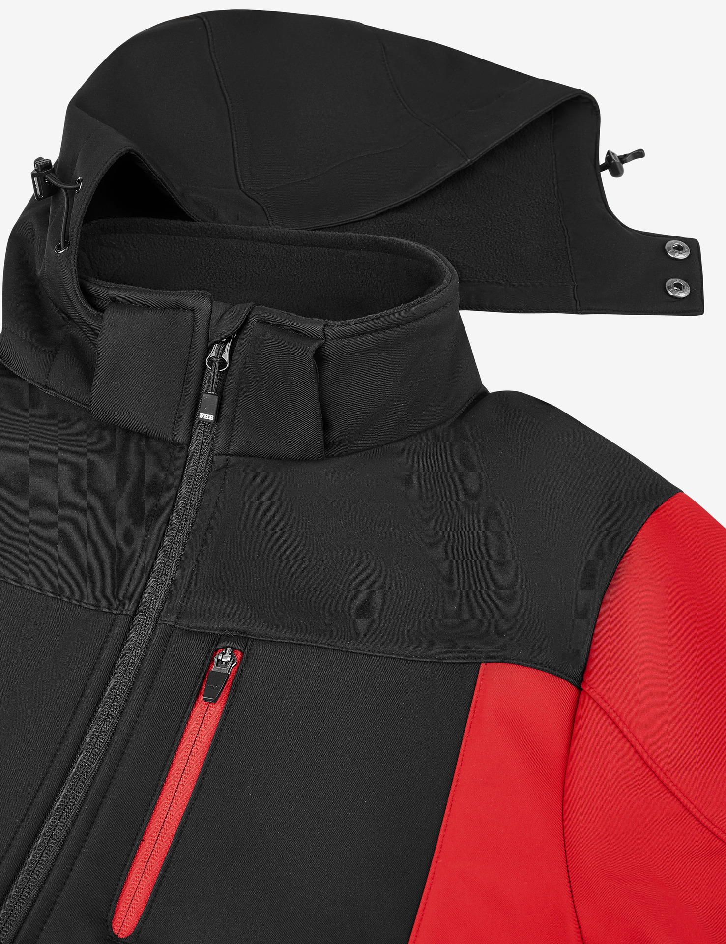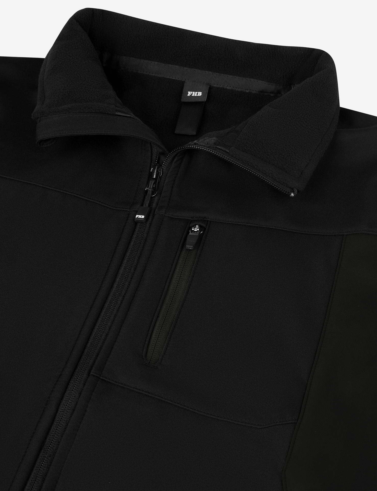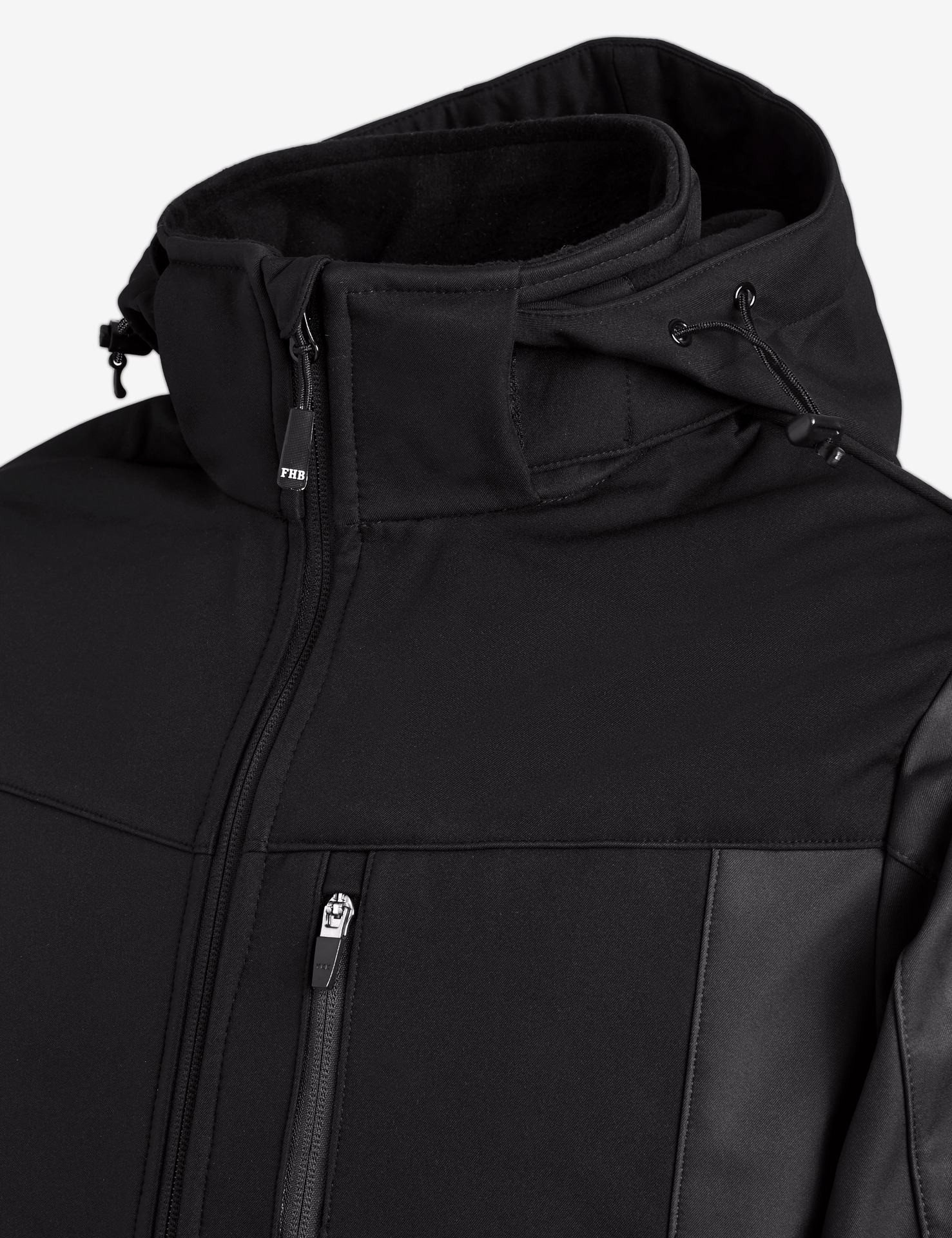 Set-In-AermelElastische, recycelte Einfassung an Buendchen und SaumInnere Rueckenhals-Einfassung aus recyceltem Material und NackenbandKunststoff-Vislon-Reissverschluss mit Metallzug und KordelendeVollstaendig verbundene innere Polarfleece-Schicht und Anti-Pilling-FinishVordere seitliche Kontrast-Softshell-Paspeltaschen mit verdecktem ReissverschlussKontrast-Softshell-Stoff an Tasche, Rueckenpasse und aeusserem KragenbandInnenliegender unsichtbarer Reissverschluss auf der linken Brustseite fuer einfache Veredelung