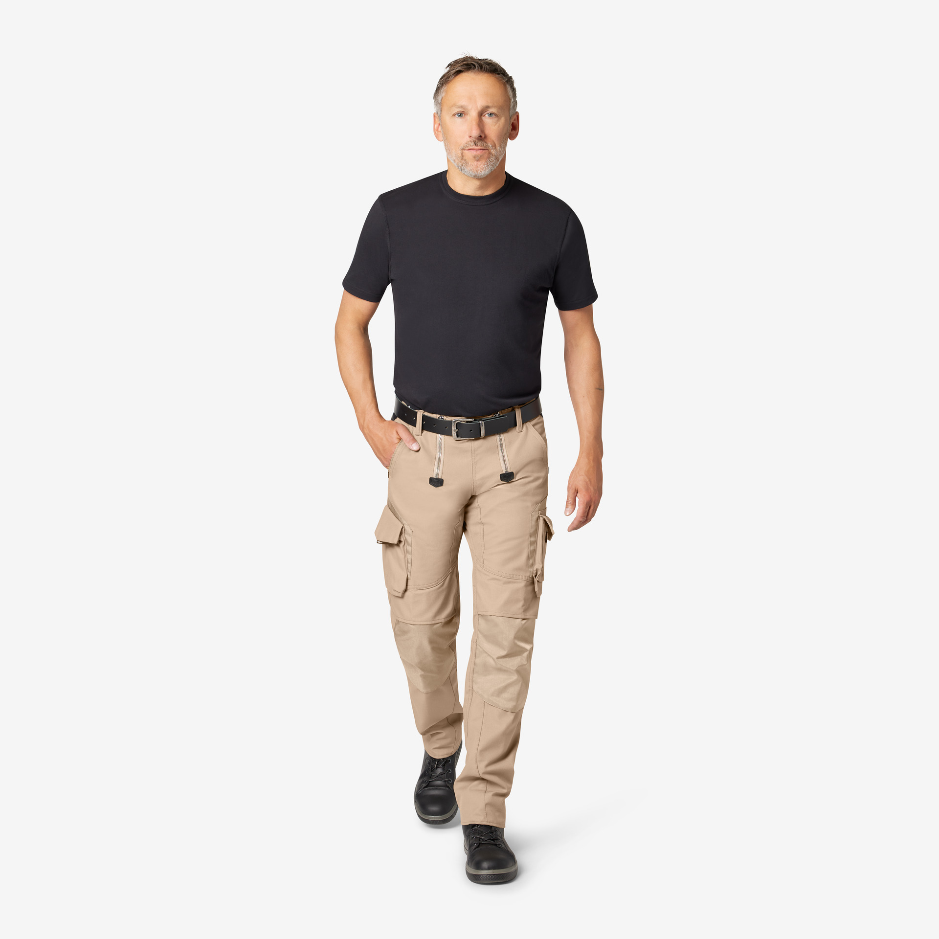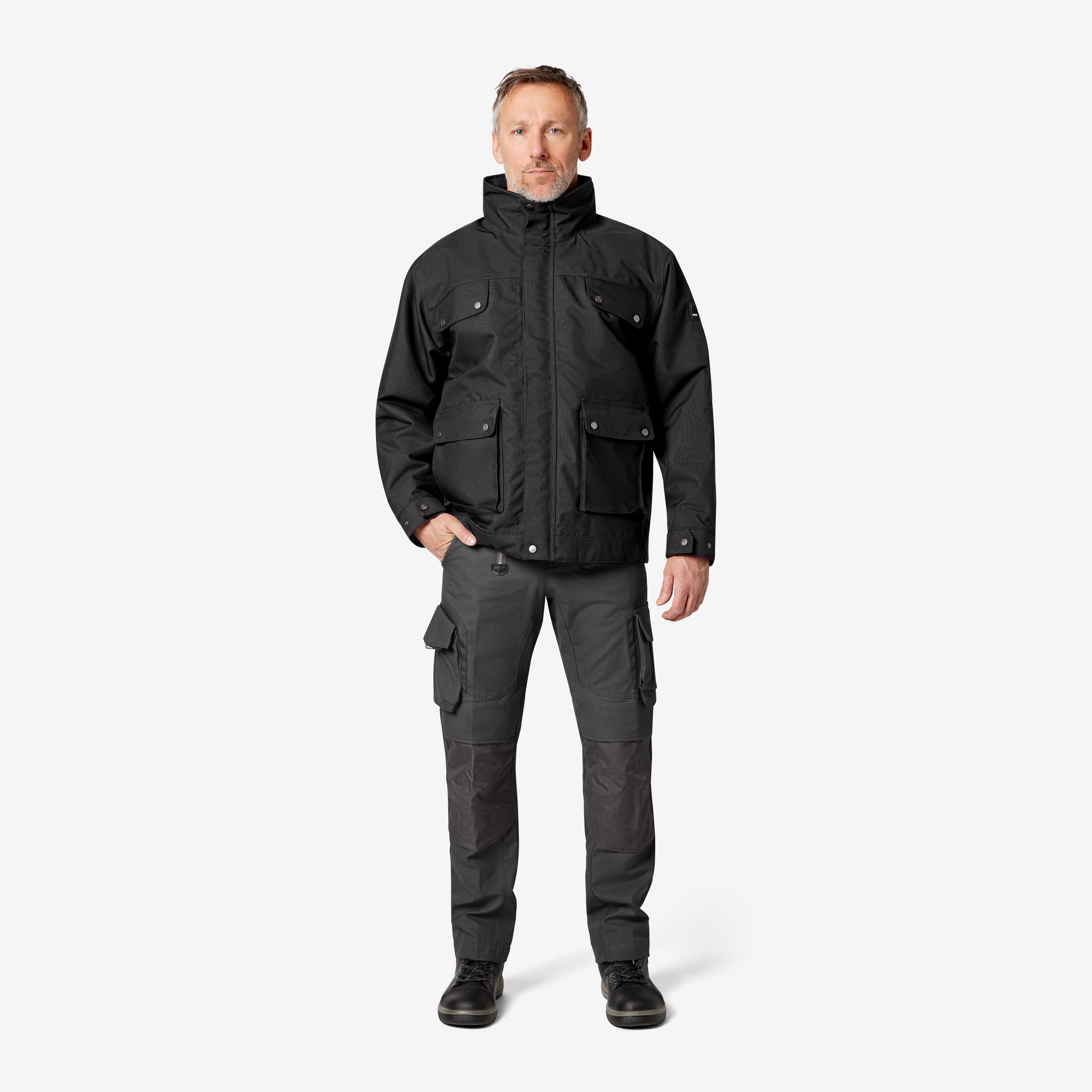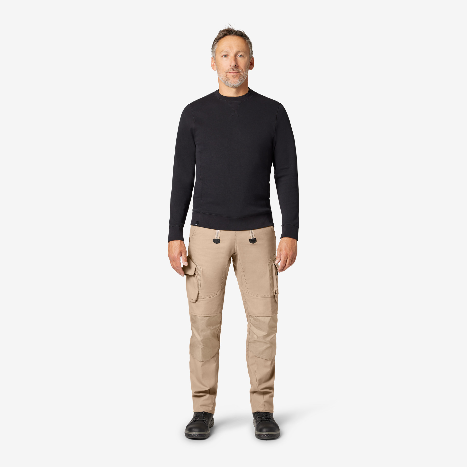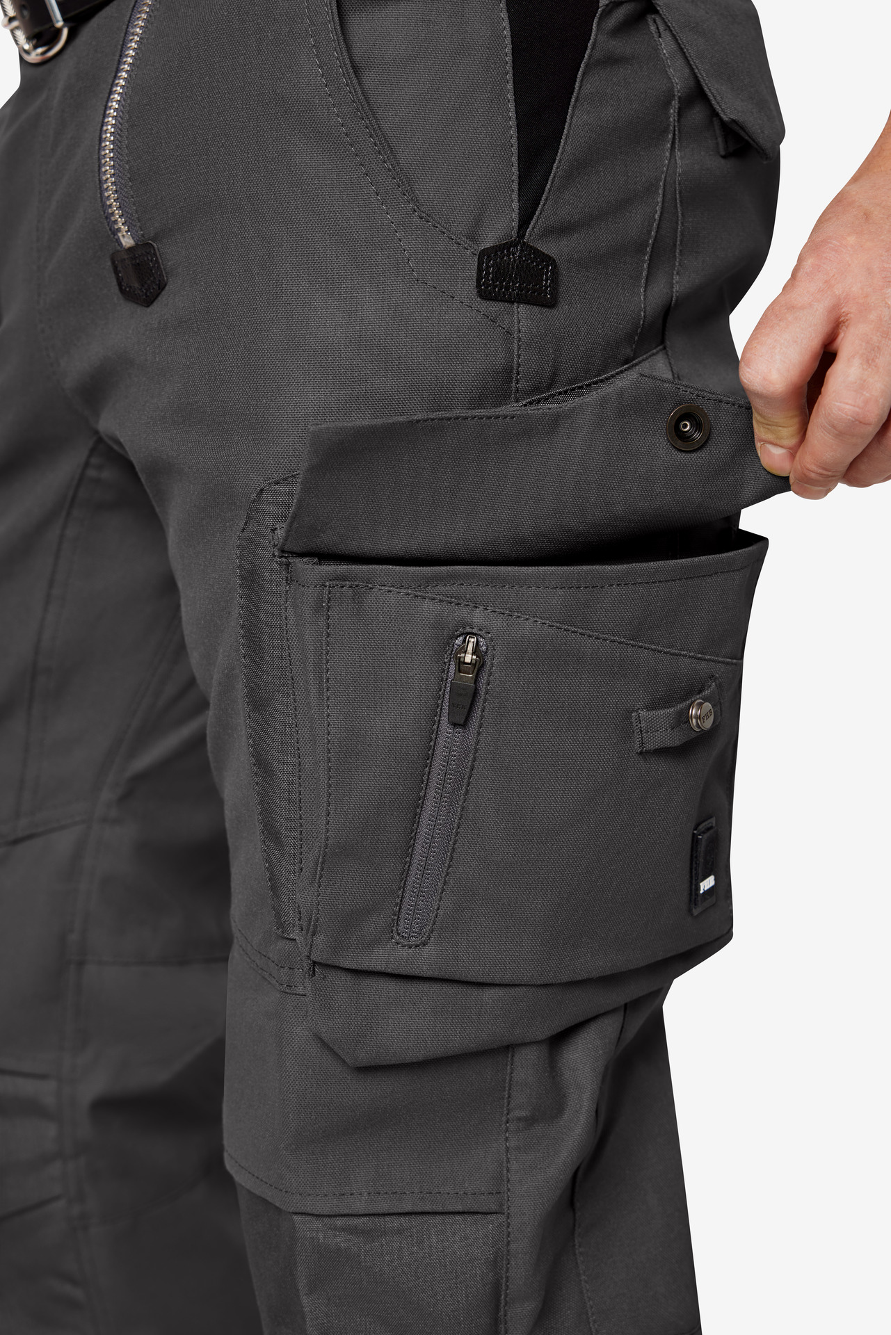 Extrem strapazierfähige Worker-Jeansshorts mit dehnbarem Hosenbund durch robuste Strickeinsätze an den Seiten. Gürtelschlaufen, Hosenknopf und Reißverschluss. Patch am hinteren Bund und ergonomisch vorgeformte Passform. Zwei Einschubtaschen, rechts mit zusätzlicher Sicherheits-Reißverschlusstasche. Zwei Gesäßtaschen mit Stickerei, rechts mit Patte und Klettverschluss. Zwei Cargotaschen mit multifunktionellen Unterteilungen, verschließbar mit Patten und Reißverschlüssen. Aufgesetzte Zollstocktasche auf der rechten Seite. […]