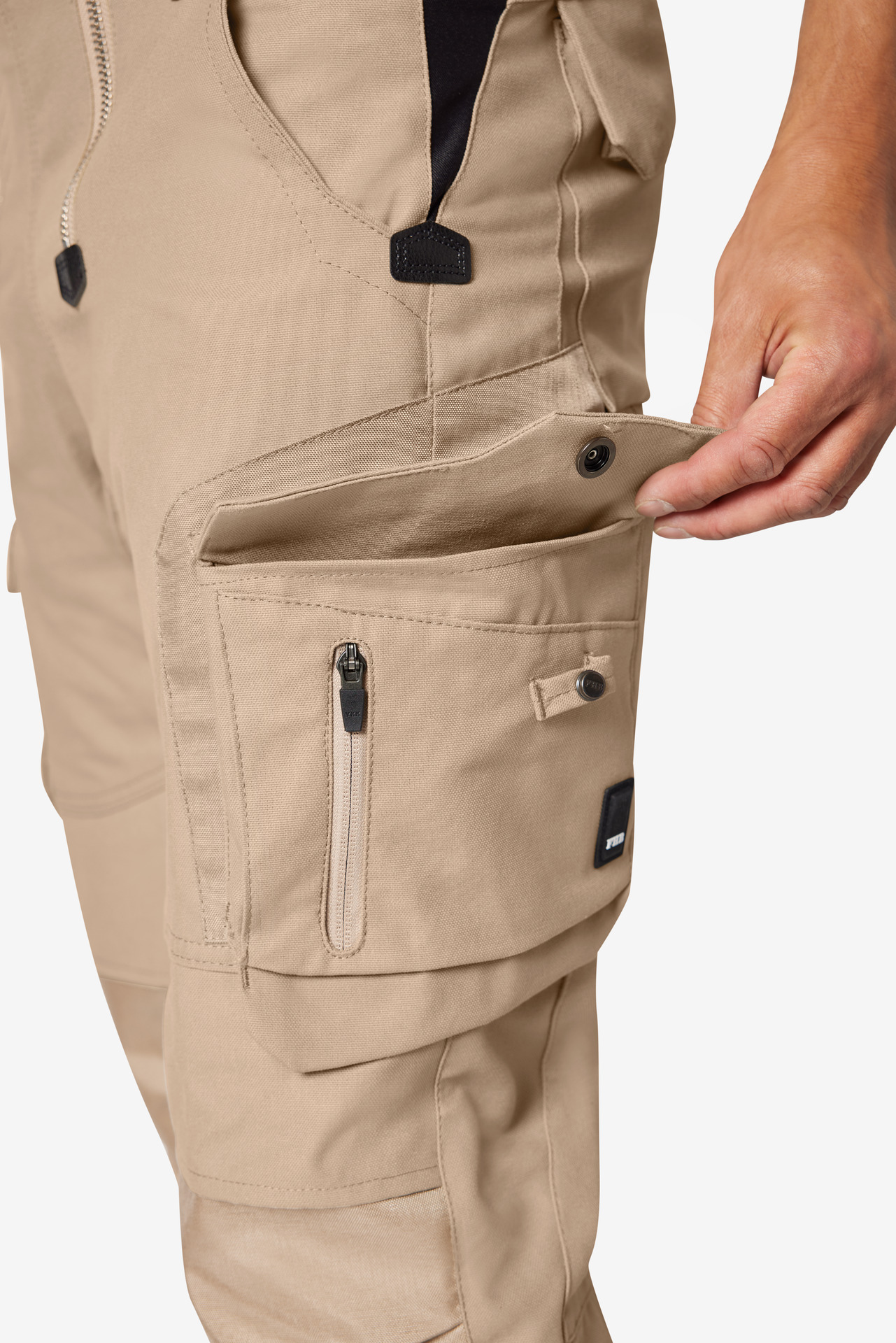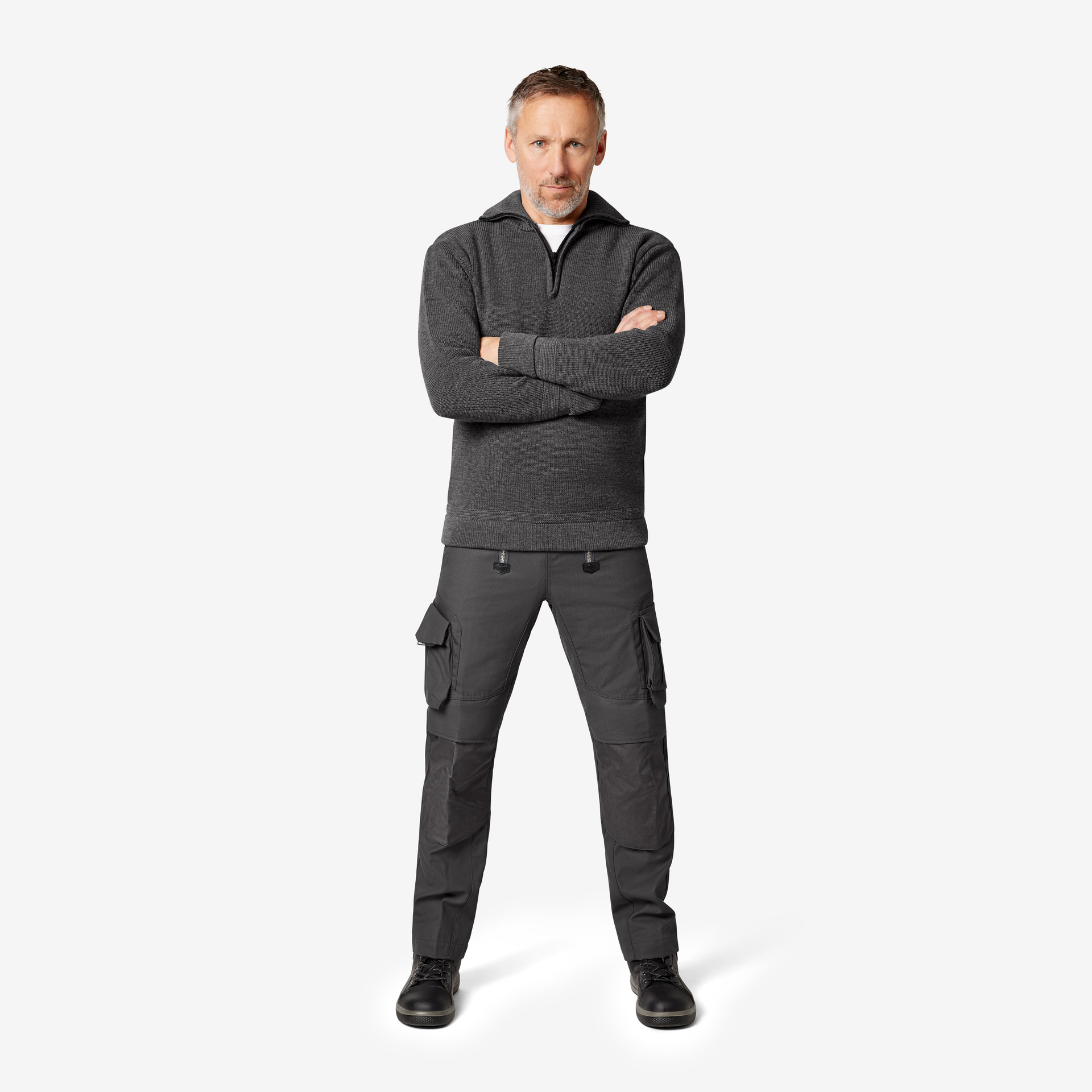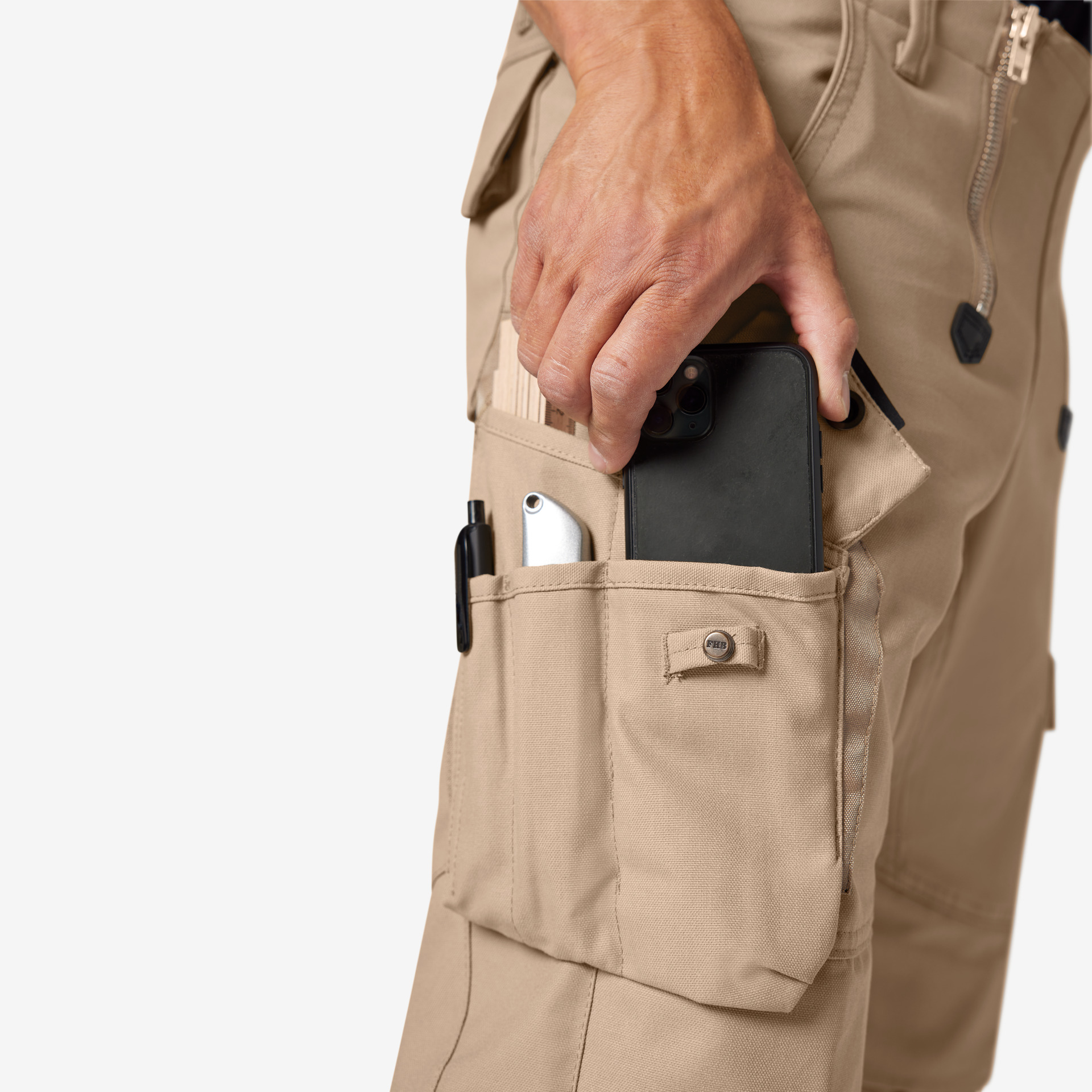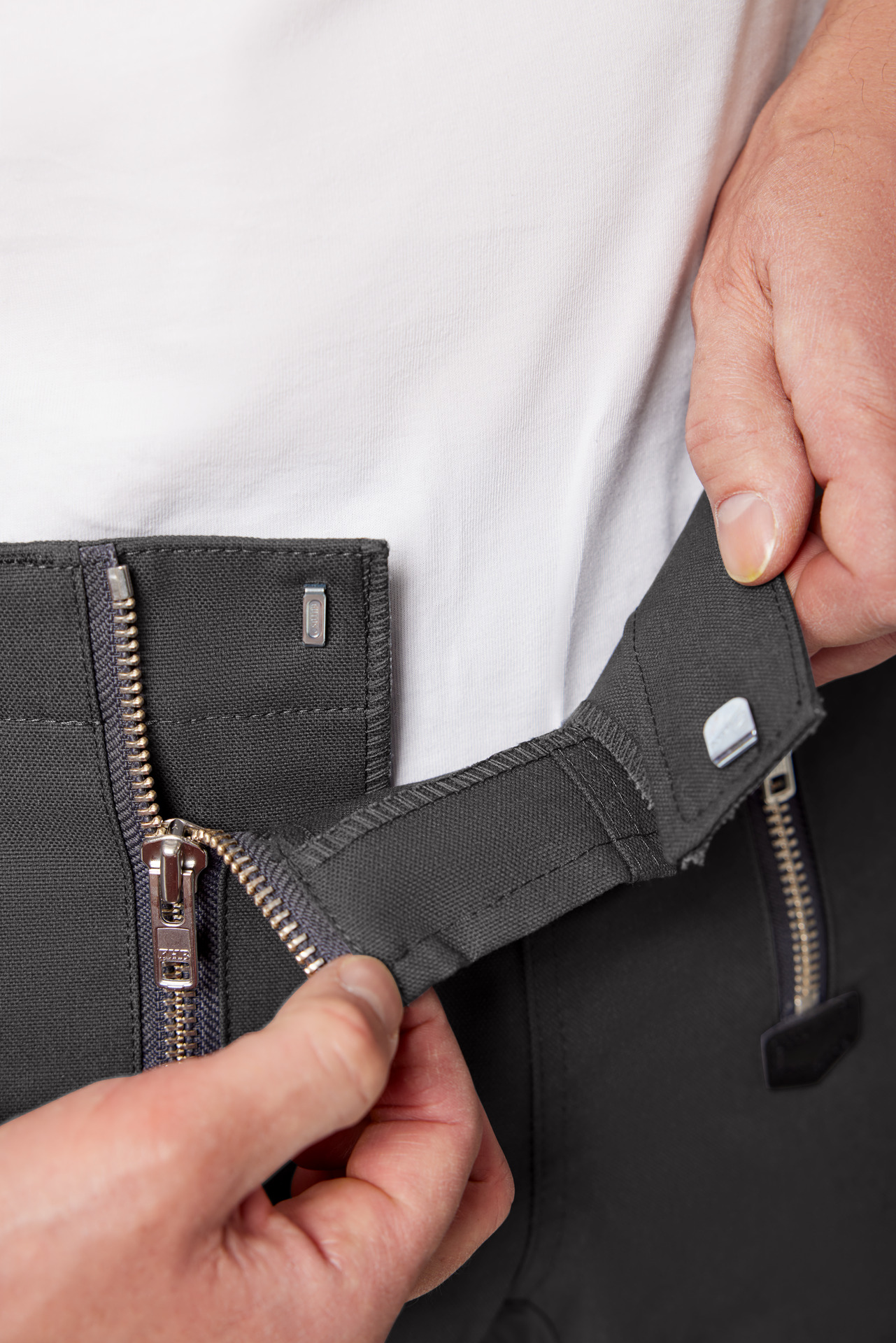 Extrem strapazierfähige Worker-Jeansshorts mit dehnbarem Hosenbund durch robuste Strickeinsätze an den Seiten. Gürtelschlaufen, Hosenknopf und Reißverschluss. Patch am hinteren Bund und ergonomisch vorgeformte Passform. Zwei Einschubtaschen, rechts mit zusätzlicher Sicherheits-Reißverschlusstasche. Zwei Gesäßtaschen mit Stickerei, rechts mit Patte und Klettverschluss. Zwei Cargotaschen mit multifunktionellen Unterteilungen, verschließbar mit Patten und Reißverschlüssen. Aufgesetzte Zollstocktasche auf der rechten Seite. […]
