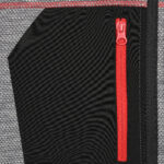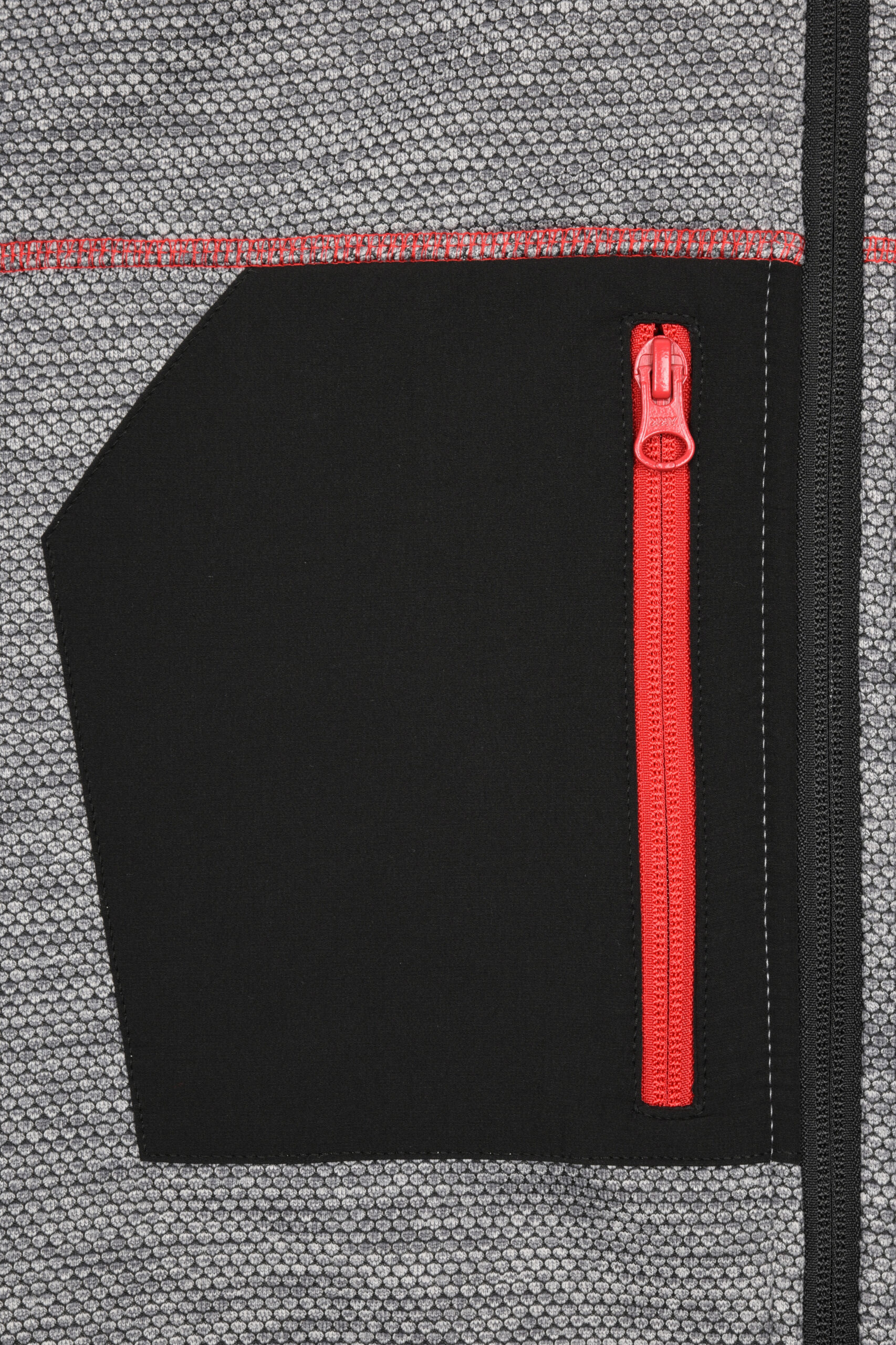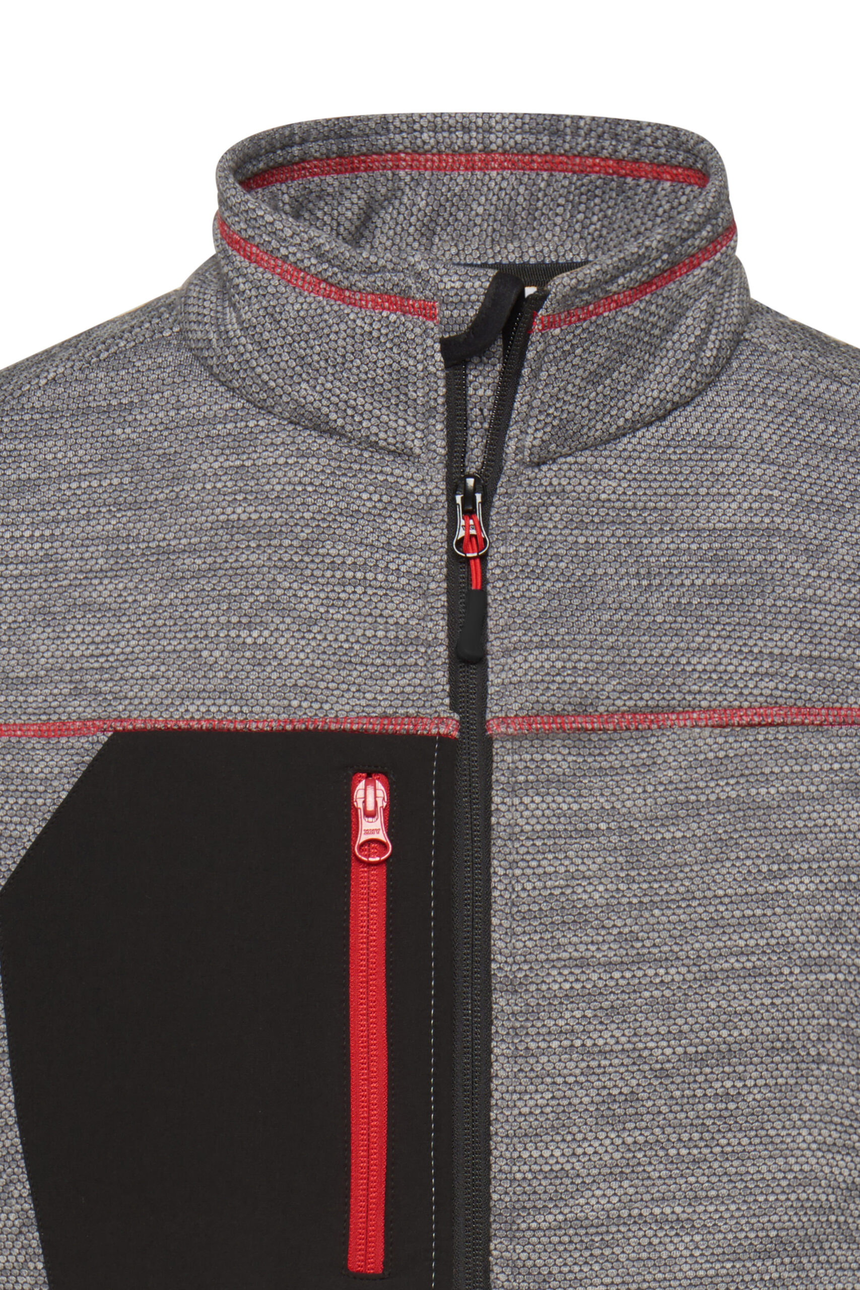 - Durchgehender, hinterlegter Reißverschluss mit Kinnschutz