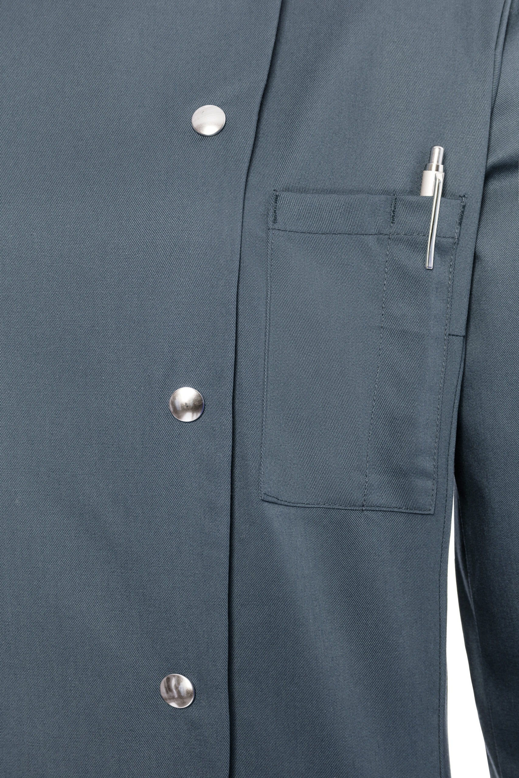 - Aufgesetzte, angeschrägte Brusttasche links, mit Stiftfach