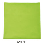 - Farblich abgestimmter, abgesteppter Gummizug, um das Handtuch zu falten