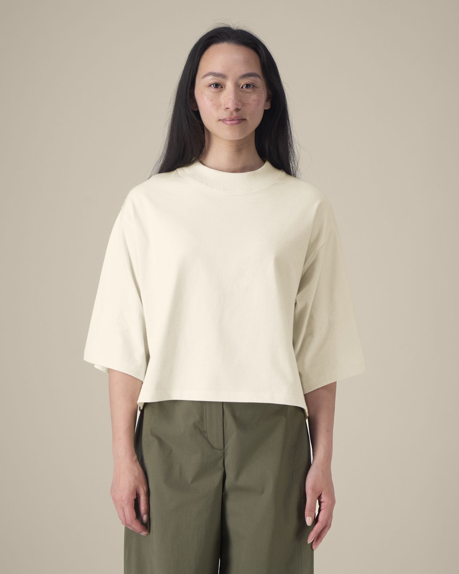 Das kurze Damen-T-Shirt aus recycelter Baumwolle